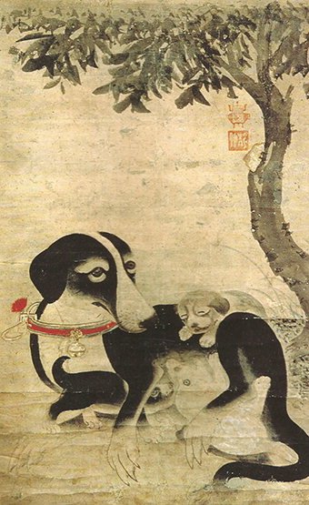 위 사진은 `모견도(母犬圖)'로써, 16세기 조선인 정중 이암의 작품입니다. 그림 속 강아지는 품종이 분명하지 않지만, 새끼 강아지들의 젖을 물리고 있습니다. 주목할 만한 점이 있다면 목에 걸려있는 빨간색 방울인데요. 과연 야생 들개에게 장식용 방울을 달아줬을까요? 글이든 그림이든 작품은 시대상을 전적으로 반영하고 있는 법이죠. 모견도를 통해 조선시대부터 강아지에 대한 애정이 있었다는 사실을 알 수 있을 겁니다.