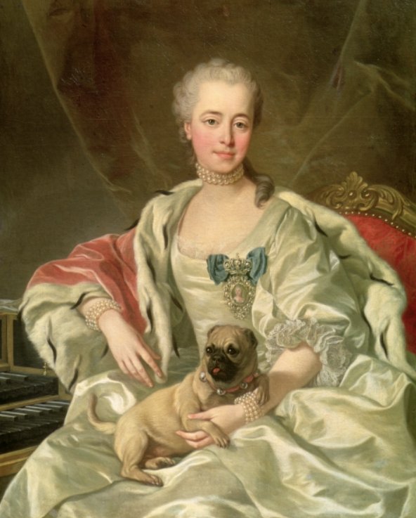 비슷한 시기의 서양 역시 많은 귀족들이 소형견을 길렀습니다. 위 사진은 프랑스의 루이 미셸 반 루 화가의 <예카트리나 드미트리예브나 골리치나 공주> 이라는 작품인데요. 위처럼 중세 유럽 작품에서 밝은 색의 리본에 방울을 단 강아지의 모습을 많이 보실 수 있을 겁니다. 당시 애완견의 미모를 가꾸고자 하는 귀족들의 사랑이 고스란히 담겨 있죠. 대표적인 예로, 털이 아름다운 비숑프리제는 프랑스 왕실의 공식 개로 임명되었으며, 파피용은 프랑스의 마리 앙투아네트의 사랑을 받았습니다. 인간과 개가 공유하는 우정의 깊이는 이처럼 옛날의 초상화를 통해 여실히 드러나고 있습니다.
